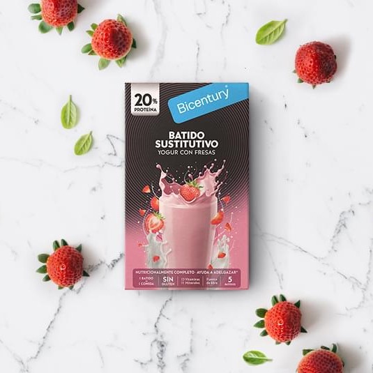 Que levanten la mano los que crean que les sobran unos kilitos. Este batido, con sabor a yogur con fresas, puede sustituir una comida porque contiene todos sus nutrientes.