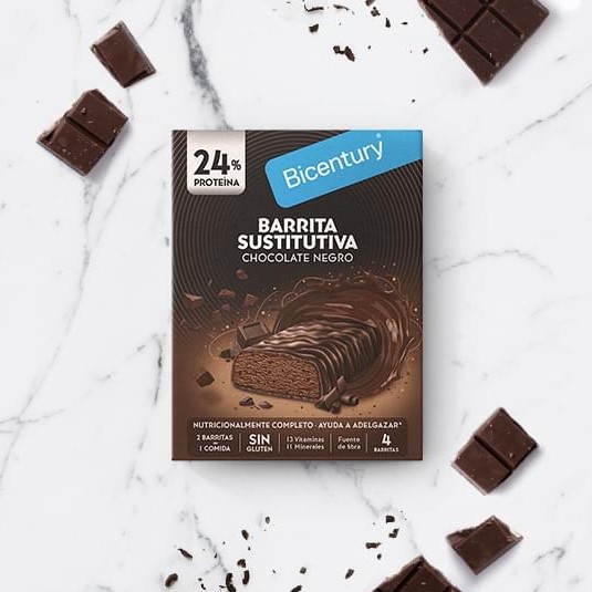 Dos barritas de chocolate negro sustituyen una comida y es ideal para mantener tu peso. Una solución fácil y práctica, ya que tiene todos los nutrientes necesarios para sustituir una comida.