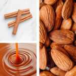 Tortitas de maíz con chocolate blanco y trocitos de almendra, caramelo y canela