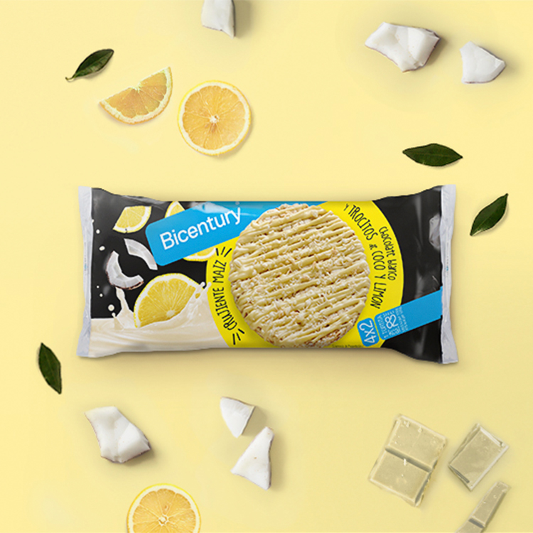 Estas son las tortitas con base de crujiente maíz de las que todo el mundo va a hablar (con la boca llena). Están bañadas con chocolate blanco y, encima, llevan trocitos de coco y limón.